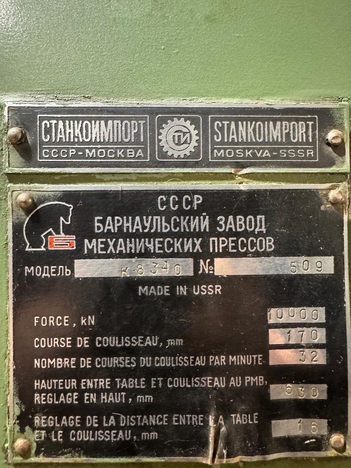 Pressa a ginocchiera Barnaul K8340 - 1000 ton